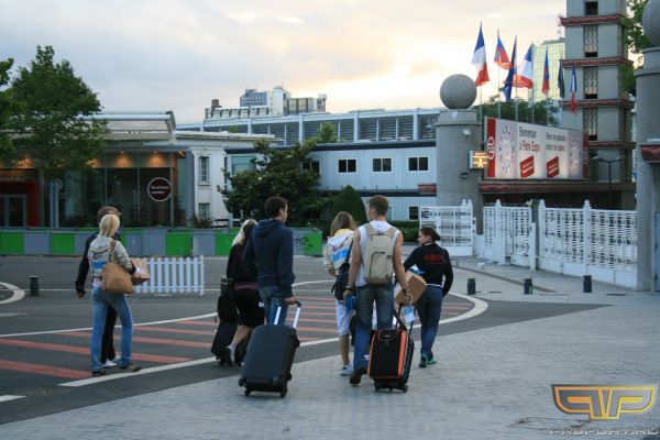 Что сразу бросается в глаза, так это асфальт. У нас в России такие дороги только на Рублевке, наверное. Проехав огромное количество развилок и мостов мы выехали на какое-то подобие кольцевой дороги (что-то вроде МКАДа в Москве). Движение во Франции довольно спокойное, несмотря на то, что было почти пять вечера, то есть в это время вроде уже пора ехать домой с работы. Париж произвел впечатление сильно индустриального города, потому что, что бы мы не проезжали, это были либо какие-нибудь заводы, либо мероприятия, либо деловые центры. Исключеним стал известный красавец-стадион Берси. Счетчик неумолимо добавлял евро, а мы таким образом понимали, насколько близко мы от места назначения (до нас прибывшие сообщили о том, что доехать до стадиона на такси стоит около 60 евро). Проезжая очередную набережную, мы заметили, что наш таксист почему-то поехал более длинным путем по объездной дороге, чем можно было проехать. Все попытки ему это объяснить закончились так же неудачно, как и когда мы вообще пытались ему что-то объяснить посредством английского языка. Жестами почему-то получалось лучше. Спустя примерно 40 минут мы приехали на Porte d' Versale, где и находился наш стадион. Отдав ему деньги и забрав чек мы пошли проходить регистрацию. Время было уже около пяти вечера, поэтому почти никаких очередей не было. Мои более знаменитые спутники сразу нашли каких-то знакомых.